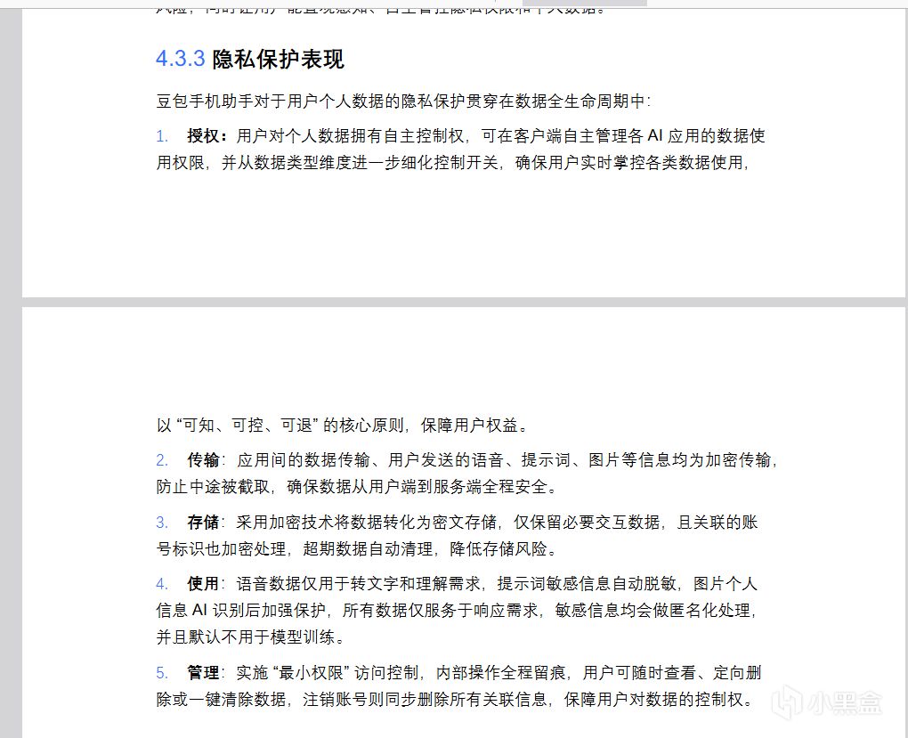 为了消解外界的疑虑,豆包在官方发布的《隐私安全白皮书》,根据豆包的白皮书,他们承诺通过端云AI安全防护体系来保障隐私。宣称利用可信执行环境(TEE)和NPU推理引擎,将敏感数据的处理锁定在硬件级的黑盒中;强调高敏感数据仅在设备本地处理,不上传云端。