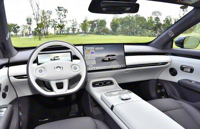 再来看车尾部分,星环贯穿尾灯由多颗灯珠组成,支持自定义灯语与流水迎宾动效。小鸭尾造型与熏黑下包围形成层次感,掀背式尾门开启角度达70°,后备箱标准容积575L。增程版保留传统排气装饰,纯电版采用全封闭式扩散器设计。